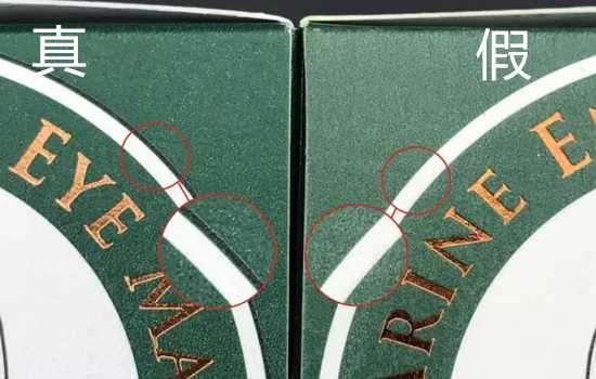 正品香蒲丽绿公主眼膜瓶身侧面有三个圆圈,每个圆圈里面都有三个小圆点,而假货的香蒲丽绿公主眼膜瓶身侧面虽然也有三个小圆圈,但是里面却没有小圆点。