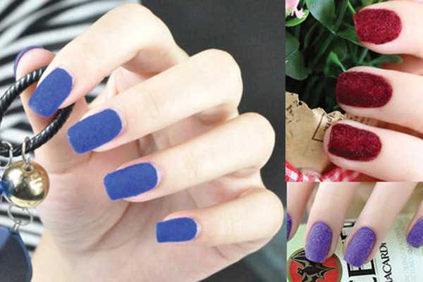哑光甲油从字面上同样很容易理解,没有光泽感,质感像磨砂一样,看上去像是用马克笔自己涂上去的。只要在涂好的甲油上再盖上一层,就能立马变身哑光效果。
