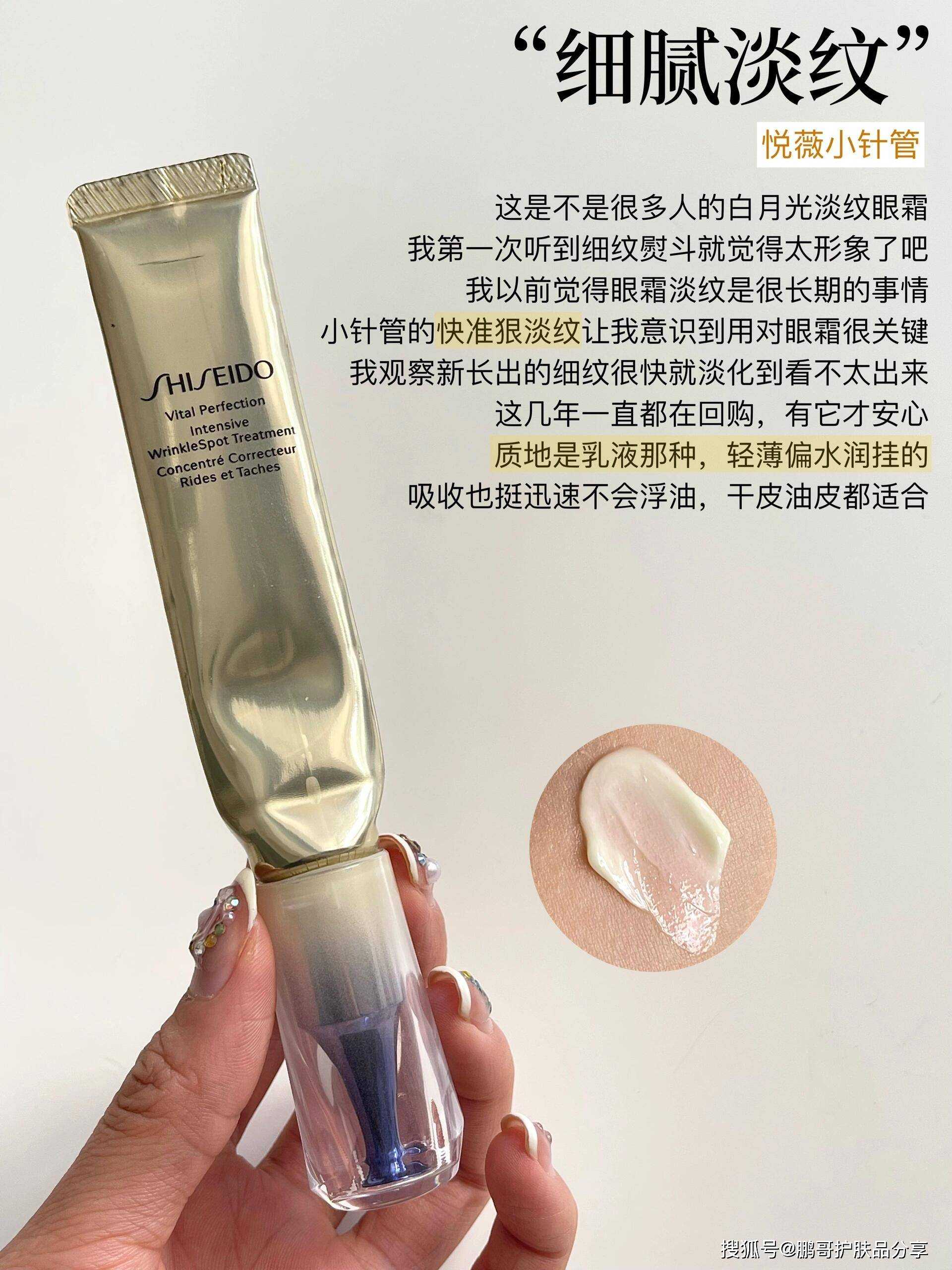 我观察新长出的细纹很快就淡化到看不太出来,这几年一直都在回购,有它才安心。质地是乳液那种,轻薄偏水润挂的,吸收也挺迅速不会浮油,干皮油皮都适合。